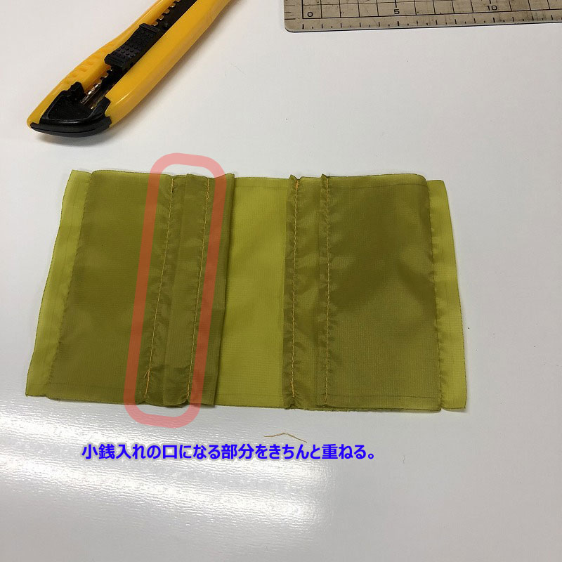 まーこんなものは大体でいいのですが、小銭いれだけ畳んだ時にちょうどいい塩梅になるように上手く調整しましょう。
